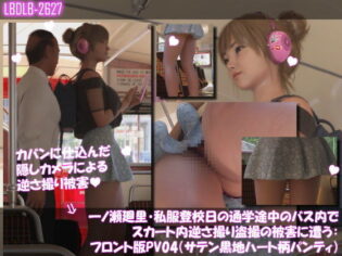 3DCG 【エロ漫画マニア】 d_736879 一ノ瀬廻里・私服登校日の通学途中のバス内でスカート内逆さ撮り盗撮の被害に遭う:フロント版PV04(サテン黒地ハート柄パンティ)